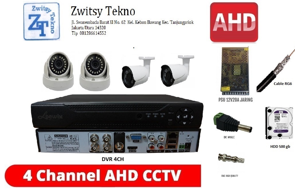 ZWITSY TEKNO merupakan salah satu menyediakan Jasa Pemasangan CCTV terbaik dan terpercaya di Indonesia dengan garansi yang resmi. Menyediakan pemasangan kamera CCTV untuk skala besar maupun kecil. Kami juga melayani pemasangan CCTV di berbagai lokasi, indoor maupun outdoor, seperti di Kantor, Hotel, Sekolah, Rumah dan tempat tempat lainnya. Setiap pemasangan CCTV dilakukan langsung oleh teknisi profesional kami yang sudah berpengalaman. Pemasangan kamera CCTV dari awal sampai selesai dilakukan sesuai standar operasional prosedur untuk memastikan hasil yang lebih rapi, aman dan sesuai harapan. Oleh karena itu, segera hubungi kami untuk Jasa dan Pemasangan CCTV yang terbaik dan aman.Zwitsy Tekno Sudah pengalaman Mengerjakan projek- projek CCTV.